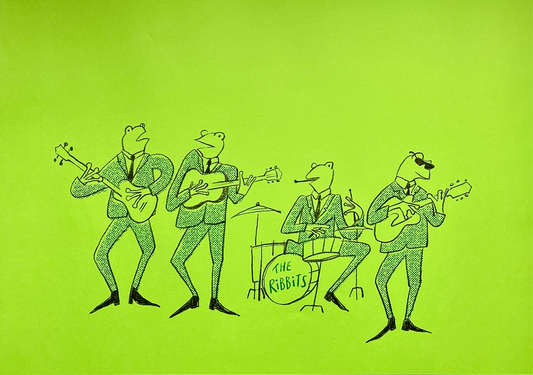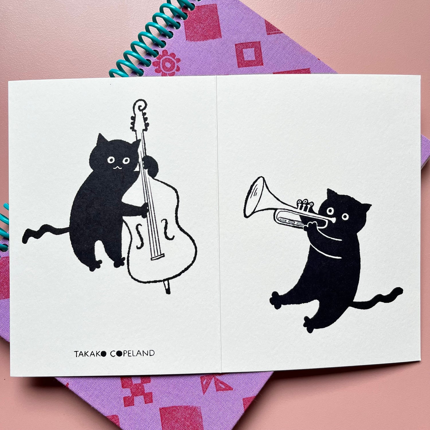 Jazz Cats Trumpet and double base jazz band- letterpress greeting card