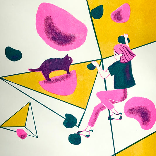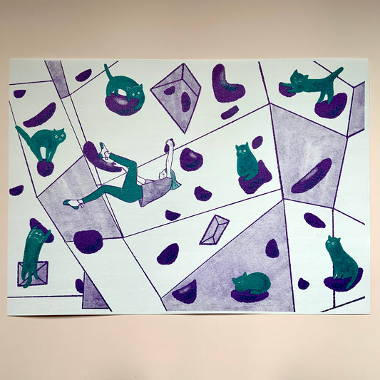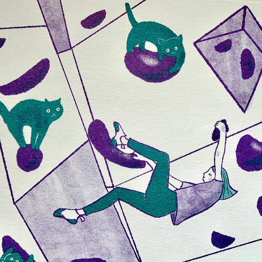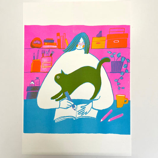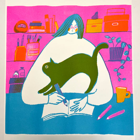 Hiragana - illustrated Japanese alphabet chart Riso print