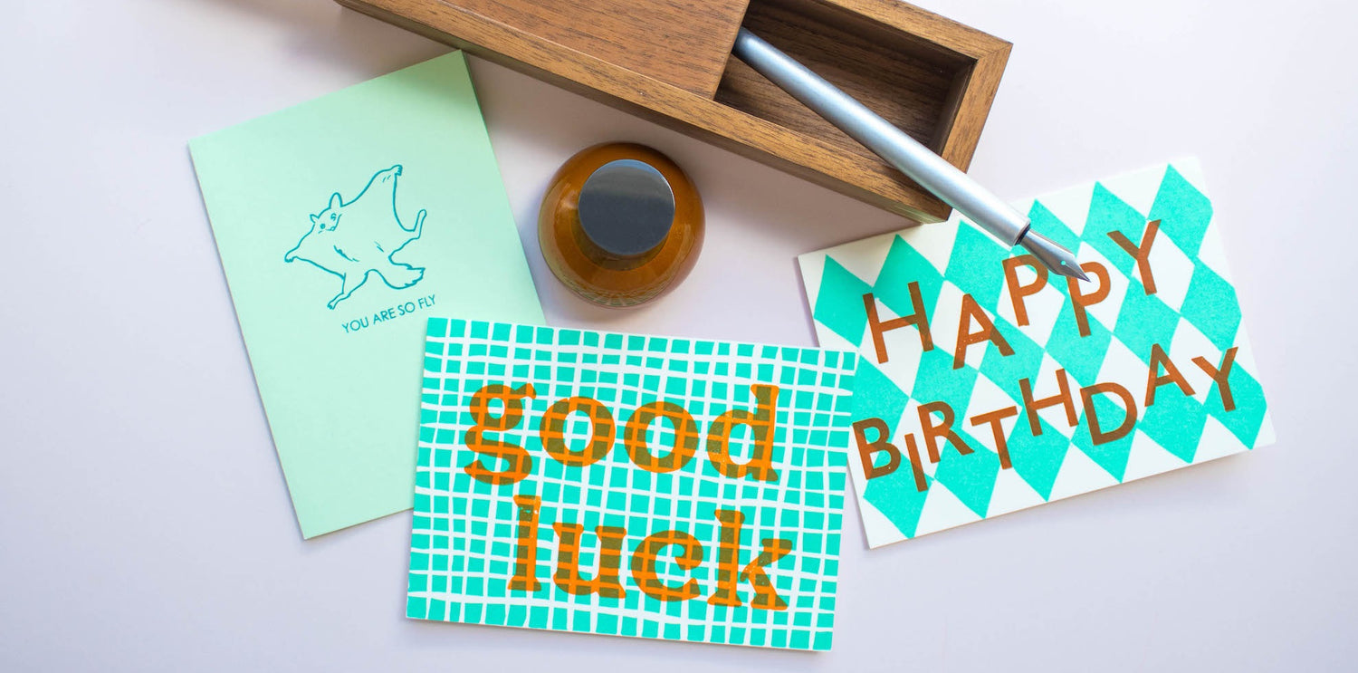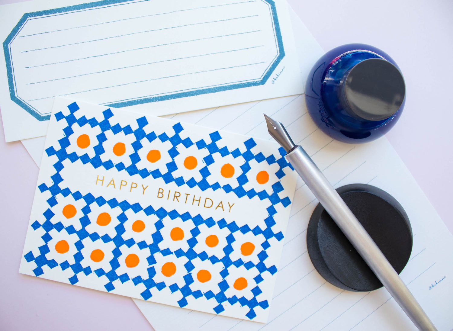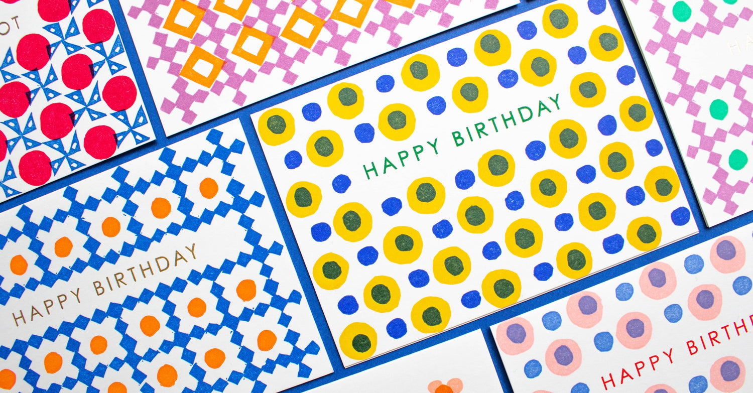 Birthday dots mint - hand printed lino cut letterpress greeting card