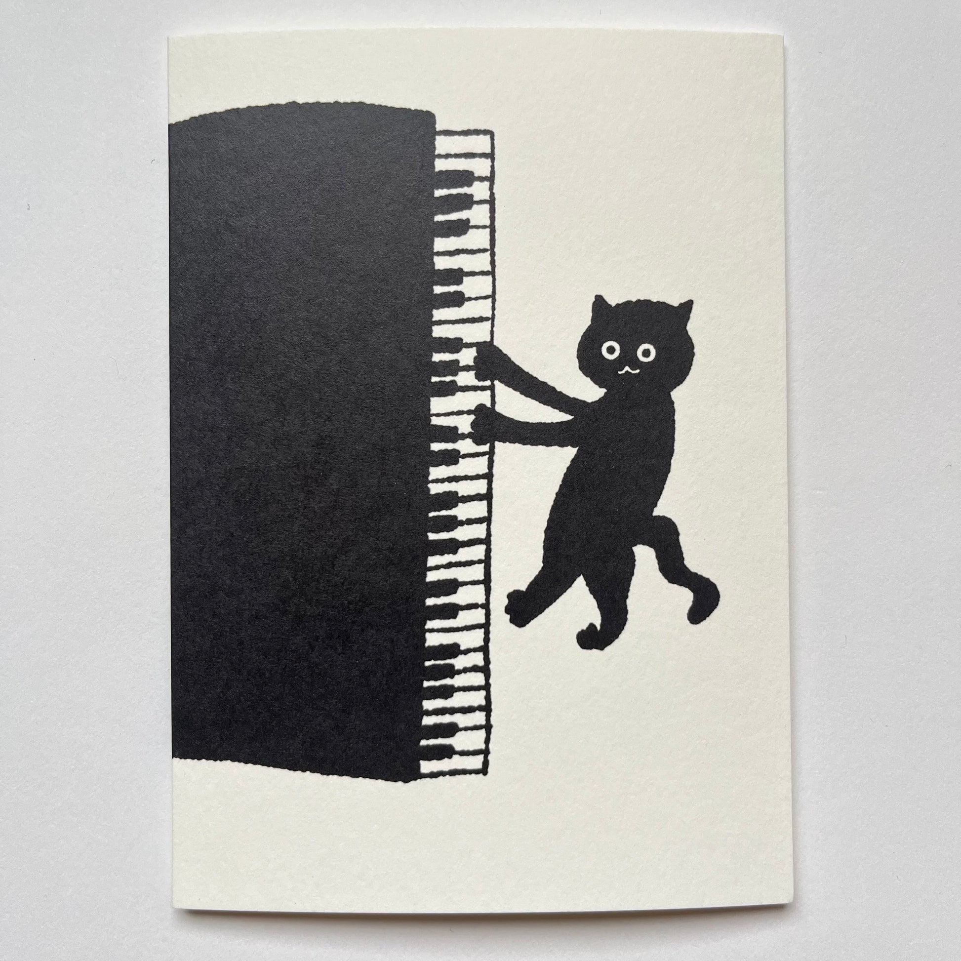 The image of 2 black cats enjoying piano is suitable for any joyful occasions. Printed with solid black ink.Based on a bestselling original illustration, also available as a T-shirt.