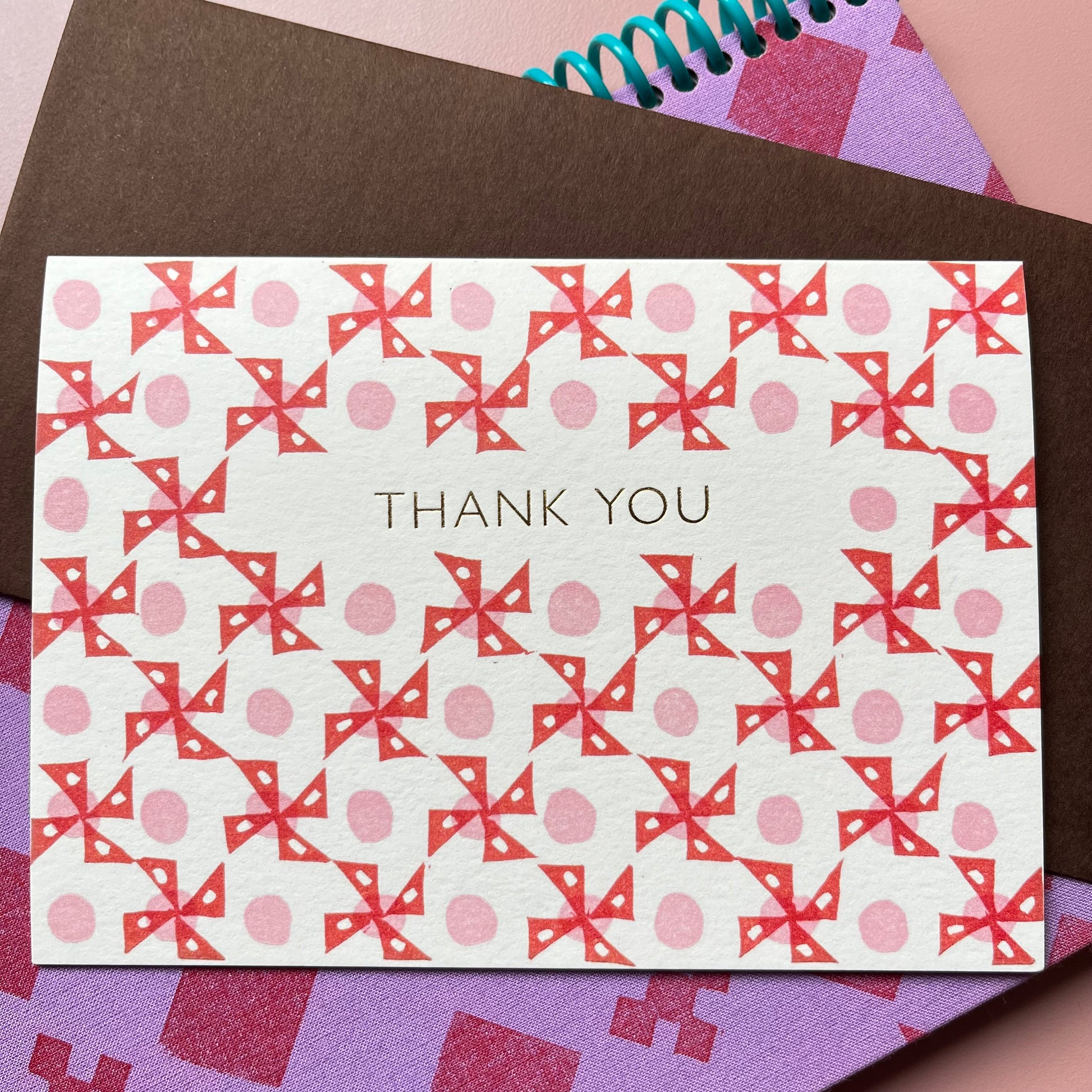 Thank You Windmill Pattern Card in Brown and Pink